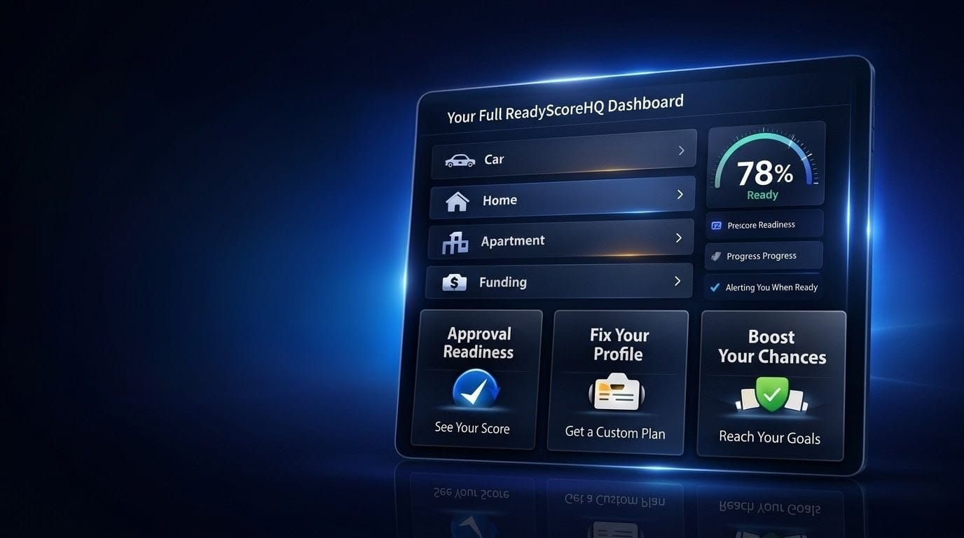 While a standard credit score tells you where you stand, your ReadyScore tells you where you’re going. It’s a proprietary analysis that compares your current profile against the specific requirements of lenders (banks, landlords, or auto dealers). It identifies the 'gap' between your current score and the approval threshold for the specific goal you’re chasing.